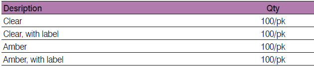 • Write-on patches with graduations at 0.5, 1.0, and 1.5 mL