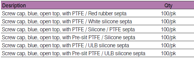 • Pre-assembled caps and septa are convenient and minimize contamination from handling