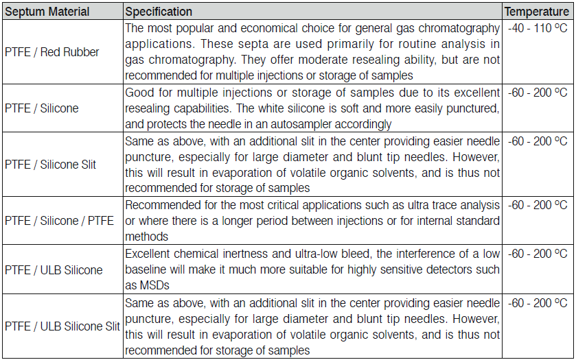 Septum Selection Guide