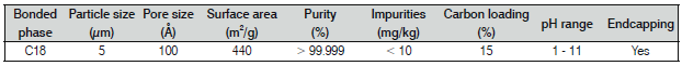 • Unique bonding technology prevents the phase collapse, and allows stable retention in highly aqueous mobile phases