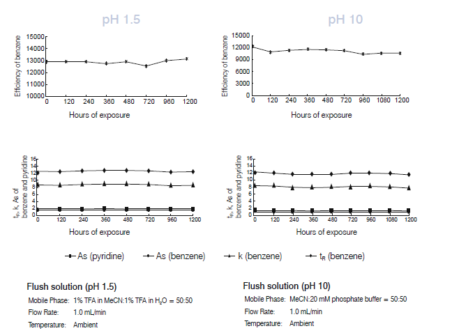 - Use of eluents in the pH range of 1-11 will maximize column life.