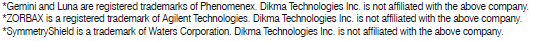 In addition to filtering samples, Guard cartridges can be used to trap "problems" before they reach the analytical column. Guard cartridges are essentially tiny HPLC columns that are cheaper to replace than the analytical column. Please contact Dikma Technologies of Ordering information for guard cartridges.