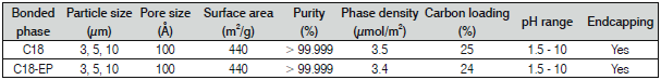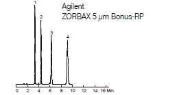 • Improved water wettability and stable retention in highly aqueous mobile phase conditions