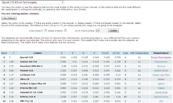 In 2011, multiple HPLC columns from Dikma Technologies Inc. (Endeavorsil C18, Leapsil C18, Spursil C18/C18−EP, Bio−Bond C18/C4/C8, and Inspire C18/C8) were selected into the 2011 USP−NF database. You can access the database at http://www.usp.org/app/USPNF/columnsDB.html, remember that you need to go to the SECOND database that comes up (labeled PQRI, not USP) − just scroll down.